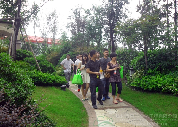 在兩天的行程中,工程事業部的人員跟隨觀摩活動組一起參觀了中河北段綜合整治與保護開發工程01標、中國鐵建?國際城(杭州)示范區園林綠化工程、東方一品公寓綠化景觀工程、六和塔公園整治工程等共計8個項目。作為2011年“杭州市優秀綠化工程”金獎獲得項目,各有精彩之處:生態自然的植物配置、節能環保的綠色材料應用、施工工藝的自主創新、施工中難點的處理等,都獨具特色,給大家留下了深刻的印象。