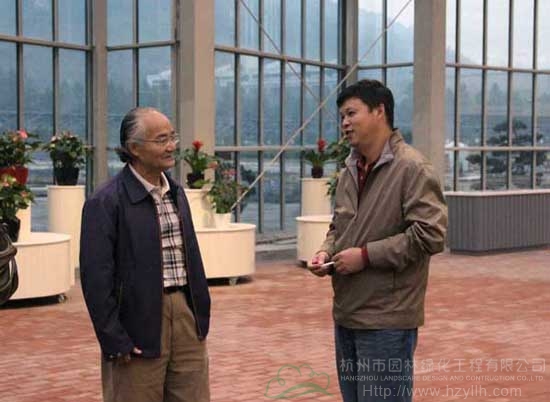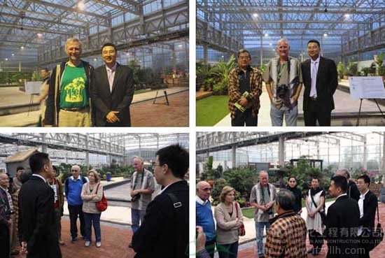 在參觀過程中,青山湖?花園中心的軟、硬件建設,以及杭州市園林綠化工程有限公司為國內園藝事業發展做出的貢獻,得到了主席團成員的一致肯定。世界屋頂綠化技術聯盟主席曼弗雷德教授指出,青山湖?花園中心的規劃超前,具有鮮明的中國特色,硬件建設更是國內首屈一指,甚至在國際上也是頂級的,該項目必將在中國引起非常大的轟動效應,預祝青山湖?花園中心開業成功。最后,主席團成員一行和青山湖?花園中心員工親切交談并合影留念。