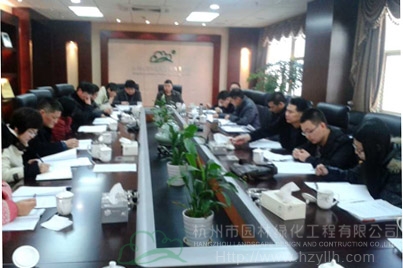 2月24日,杭州市園林綠化工程有限公司召開了2013年度科技工作會議。董事長吳光洪,總經理張炎良,副總經理陳伯翔、丁旭升,總經理助理吳憶明,工程總監高國良,財務總監孫立恒,總工辦、研發中心等領導及相關部門人員參加了會議。