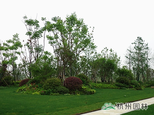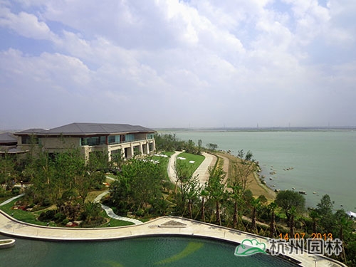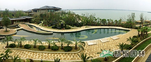 該酒店的景觀工程(一標(biāo)段)由杭州市園林綠化股份有限公司承建,工程施工面積10萬(wàn)余平方,施工內(nèi)容包括綠化種植、硬質(zhì)鋪裝、園路施工、景觀小品工程、樁基工程、給排水系統(tǒng)工程及景觀照明系統(tǒng)等。作為一個(gè)綜合性園林工程,該工程施工內(nèi)容多,工程量大,工藝相對(duì)復(fù)雜,對(duì)施工技術(shù)的要求較高。