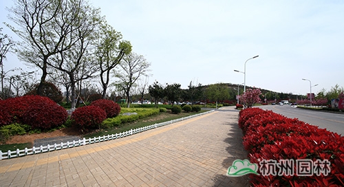 為恢復(fù)植被,修復(fù)裸露的山體,工程中應(yīng)用了大量的植物,其中,榔榆、喜樹(shù)、樸樹(shù)、三角楓、黑松、香樟、銀杏、無(wú)患子、女貞、欒樹(shù)、七葉樹(shù)、五角楓、楓香、雪松、烏桕、廣玉蘭、黃連木、黃金槐、馬褂木等喬木50余品種,2.3萬(wàn)余株,鄉(xiāng)土樹(shù)種占88%;垂絲海棠、映山紅、櫻花、紫薇、金絲繡球、含笑、紫葉李、茶梅、紅梅、紅櫨等花灌木100余品種,2.5萬(wàn)余株;紅葉石楠、金森女貞、扶芳藤、南天竹、灑金珊瑚、水果蘭、六道木、檉柳、衛(wèi)矛、無(wú)刺枸骨、毛鵑、連翹、金鐘、迎春、紅花檵木等綠籬40余品種,面積約4.1萬(wàn)平方米;各種宿根、球根、時(shí)令花卉和水生植物,如薰衣草、金雞菊、郁金香、鳶尾、牡丹、金絲桃、珍珠梅、繡線(xiàn)菊、美人蕉、荷蘭菊、蒲公英、亞菊、玉龍草、八仙花、瓊花、月季、薔薇等80余品種,面積約2.8萬(wàn)平方米;鋪設(shè)草坪及地被麥冬等面積約8.7萬(wàn)平方米。豐富的植物應(yīng)用,使得原本裸露的山坡披上了綠色的盛裝,公園內(nèi),春有百花爭(zhēng)艷,夏有綠蔭匝地,秋有金色滿(mǎn)園,即使到了冬天,也仍能看到滿(mǎn)山的綠色與生機(jī)。
