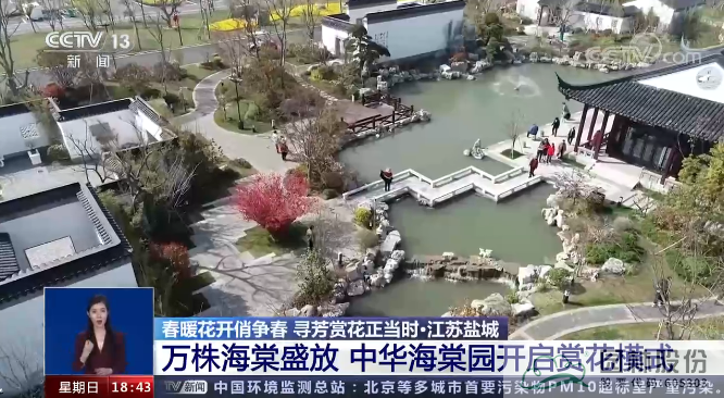 “春暖花開俏爭春,尋芳賞花正當時。”3月28日,央視CCTV13新聞頻道《共同關注》及《東方時空》兩個欄目,先后在熱播時段,報道江蘇鹽城中華海棠園內海棠花盛開的美景,為當地踏春旅游“錦上添花”!