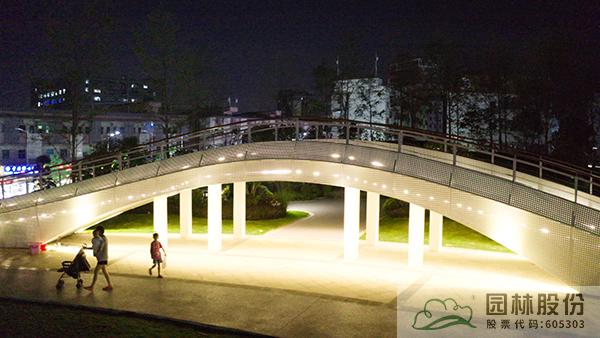 一座人行天橋,將公園景觀一分為二,動靜結合,相得益彰。既劃分空間,又是公園景觀的一部分。