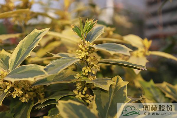 其中,彩葉冬青更是其中的佼佼者。除了果實(shí)可供觀賞外,它們還擁有黃色葉、藍(lán)綠色葉和銀邊葉等彩色葉片。葉形變異也是相當(dāng)豐富,具四角狀,橢圓形,倒卵形等多種形狀;有些品種具有刺狀葉片,而有些則是光滑的葉片;有些品種葉緣還具有波浪狀的起伏。四季景觀分明,在春季,它們的莖腋間會(huì)簇生出一朵朵清新可愛(ài)的小花;而在當(dāng)年生的枝條上,則會(huì)抽出亮麗的嫩葉。到了秋季,隨著氣溫的驟降,葉色會(huì)變得更加地明艷;冬季的時(shí)候,在雌性的植株枝條上,則會(huì)掛滿累累的果實(shí)。這些不同的形態(tài)和色彩變化,使得彩葉冬青在不同的時(shí)間和空間中呈現(xiàn)出不同的姿態(tài)、色彩與意境,從而提升了冬青品種的觀賞價(jià)值,成為園林景觀中重要的觀葉植物。