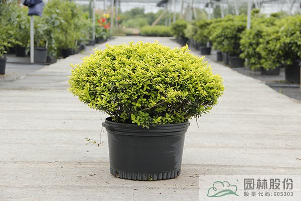 ‘金寶石’鈍齒冬青Ilex crenata 'Golden Germ':是一種密集,多枝的常綠灌木,株型緊湊,葉子呈卵形到橢圓形,葉緣具有圓形的鋸齒,表面光滑,無(wú)刺。新梢和新葉金黃色,老葉黃綠色,四季不變色,自然成型,是優(yōu)良的金黃色系列花灌木。可以用于片植、列植、叢植等多種種植方式,還可以用于色塊、基礎(chǔ)種植、混合花境等場(chǎng)合。此外,它也可以被用于制作球形盆景。需要注意的是,‘金寶石’鈍齒冬青是雄性品種,因此它不會(huì)結(jié)果。然而,在晚春的莖上,你可以在葉腋處看到綠白色的小花,這也是一種美麗的景象。